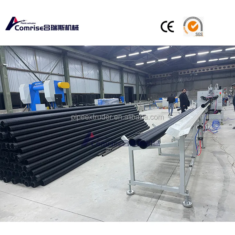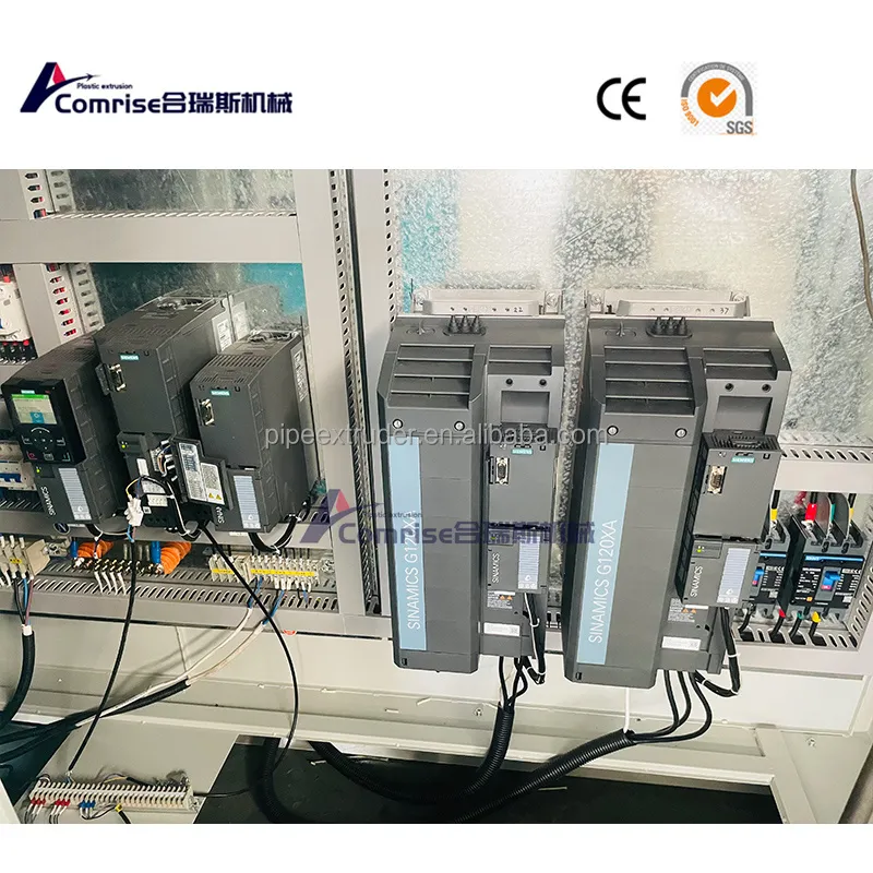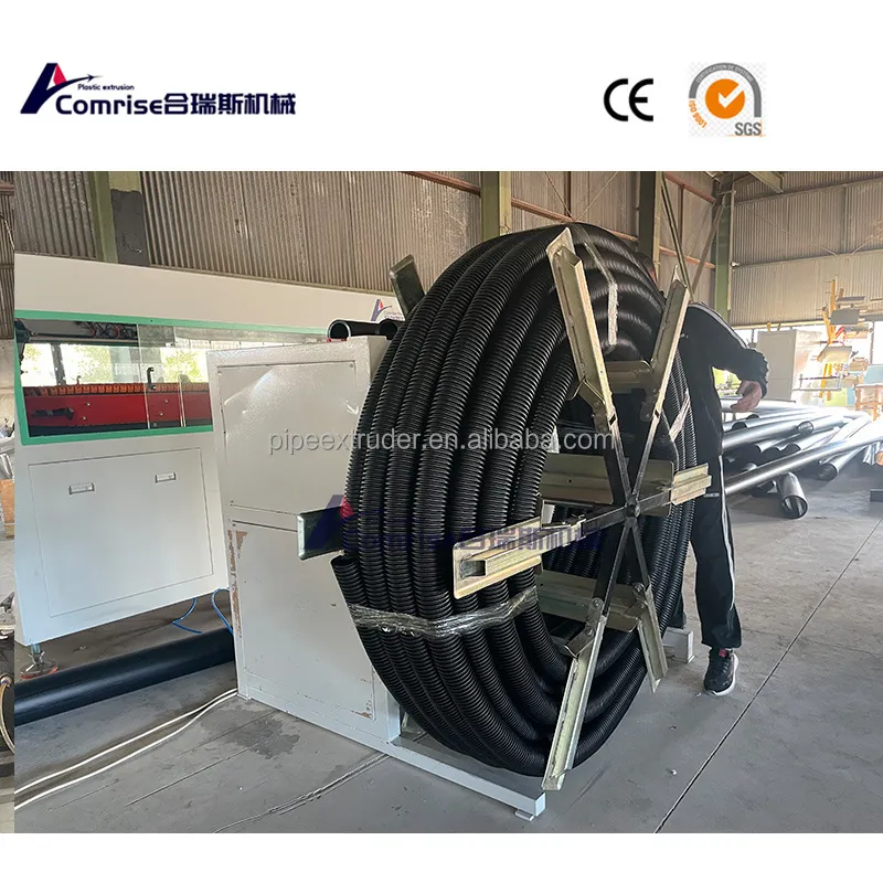 1। এক্সট্রুডার: মূল উপাদান যেখানে কাঁচামাল (সাধারণত এইচডিপিই, পিভিসি, বা পিপি) গলে যায় এবং একটি অবিচ্ছিন্ন পাইপে গঠিত হয়।