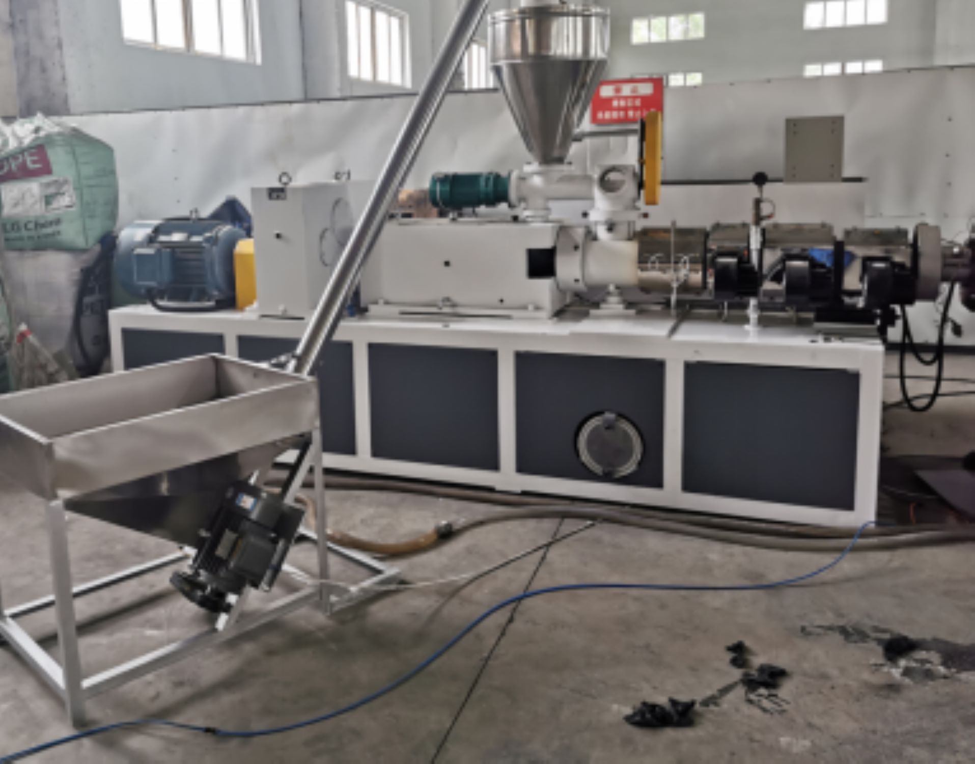 2। পিভিসি পাইপ উত্পাদন লাইনে একটি শঙ্কুযুক্ত টুইন-স্ক্রু এক্সট্রুডার, ভ্যাকুয়াম ক্যালিব্রেশন ট্যাঙ্ক, প্রিন্টার, ট্রেলার, কাটার, স্ট্যাকার ক্রেন ইত্যাদি রয়েছে।