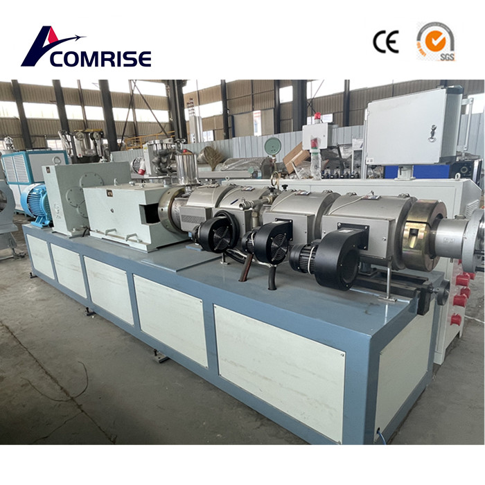এই সেটটি কনিকাল টুইন-স্ক্রু এক্সট্রুডার, ভ্যাকুয়াম ক্যালিব্রেটিং ট্যাঙ্ক, হোল-অফ, কাটার, স্ট্যাকার বা বেলিং মেশিন ইত্যাদির সমন্বয়ে গঠিত। প্রয়োজনীয়তা.এটি করাত ব্লেড কাটিয়া প্রকার বা গ্রহের কাটিয়া প্রকার বেছে নিতে পারে it